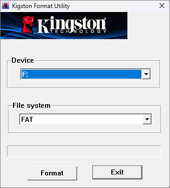 Kingston USB Format Utility FAT32, NTFS Kingston up to 128GB Moderate Official Kingston drive reset