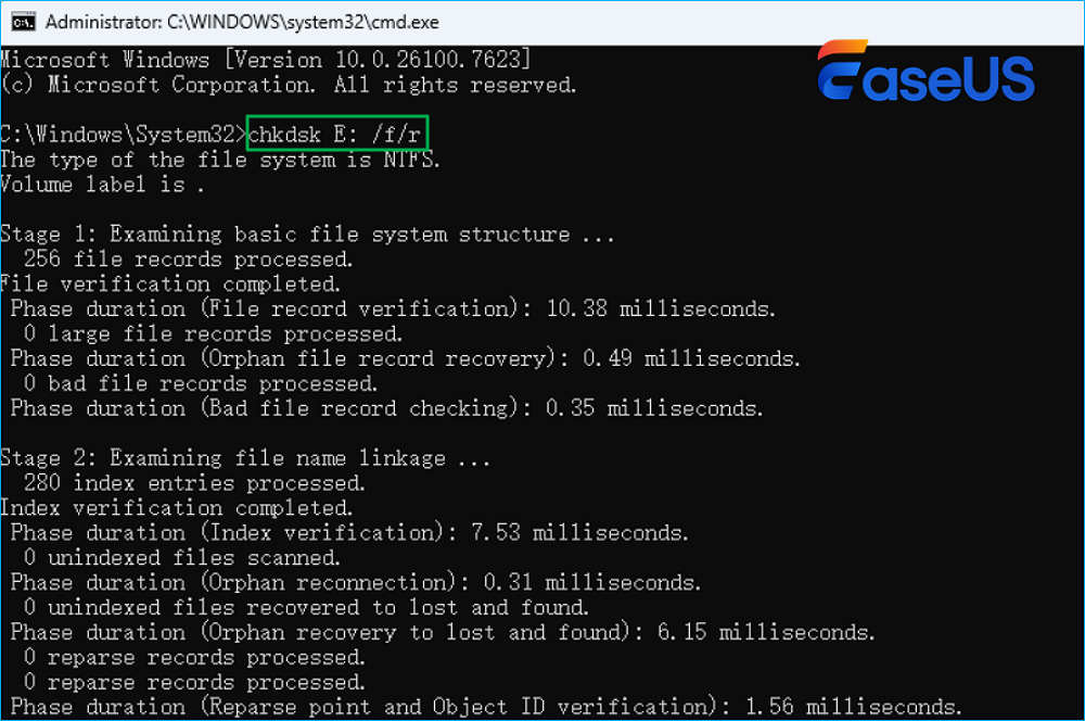 If you are comfortable using system commands, CHKDSK can scan the USB flash drive for logical file system issues and attempt repairs. It works best when the USB drive still has a recognizable file system. Here is how to run CHKDSK: