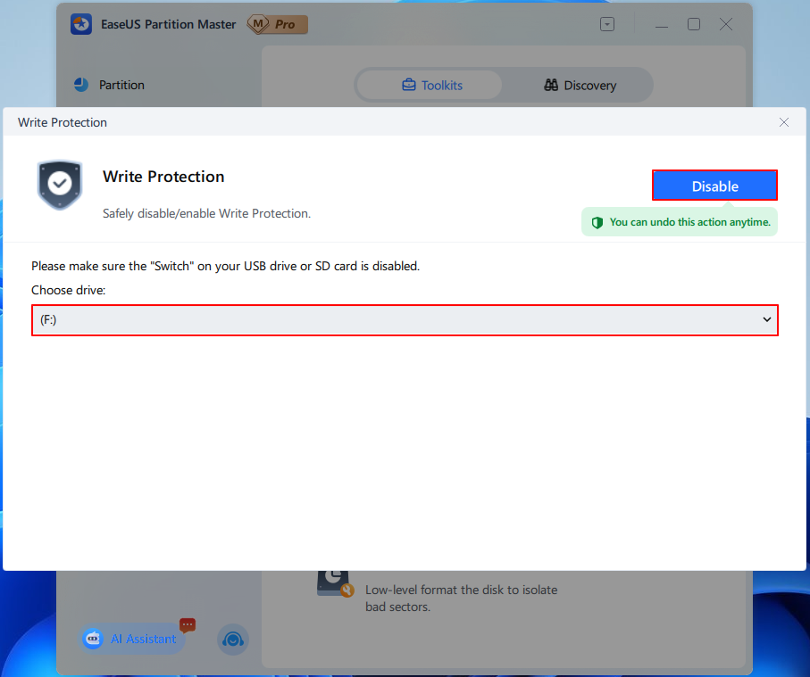 EaseUS Partition Master released a Write Protection feature (Version 17.5) that lets you easily enable or remove write protection on USB drives, SD cards, and external hard drives through a simple graphical interface, without using DiskPart or Registry edits.