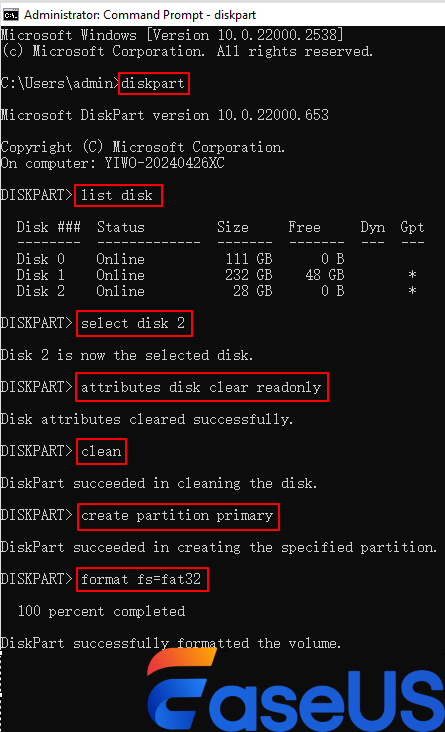 Step 5. If not, follow the steps below using DiskPart to format the USB drive.